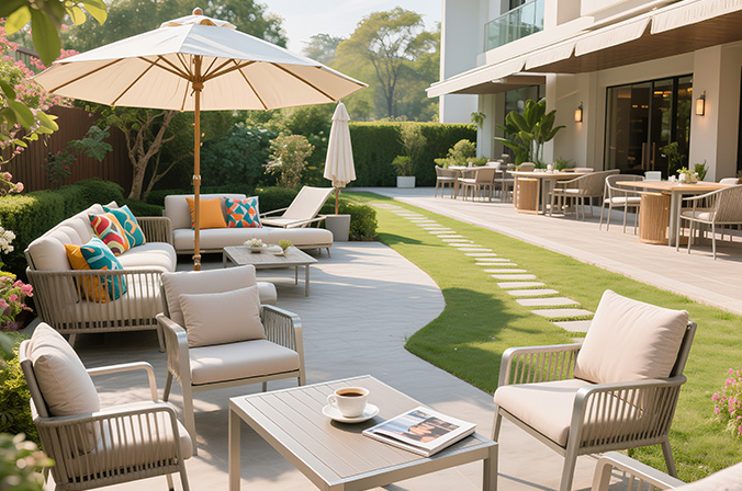 end outdoor dining and leisure areas of commercial hotels and restaurants, you can find suitable