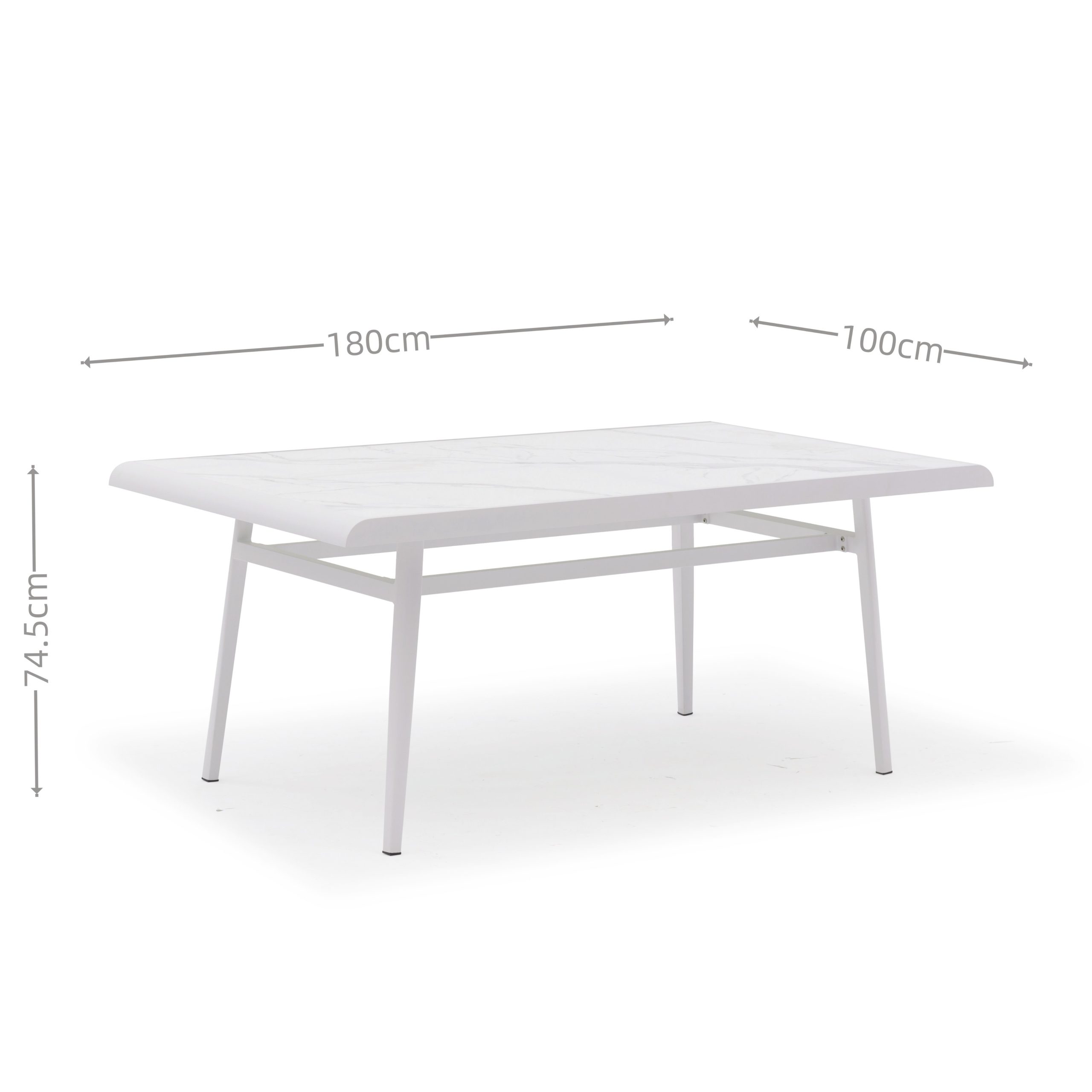 ALU TABLE WITH STONE GLASS TOP: | L180xW100x74.5cm |