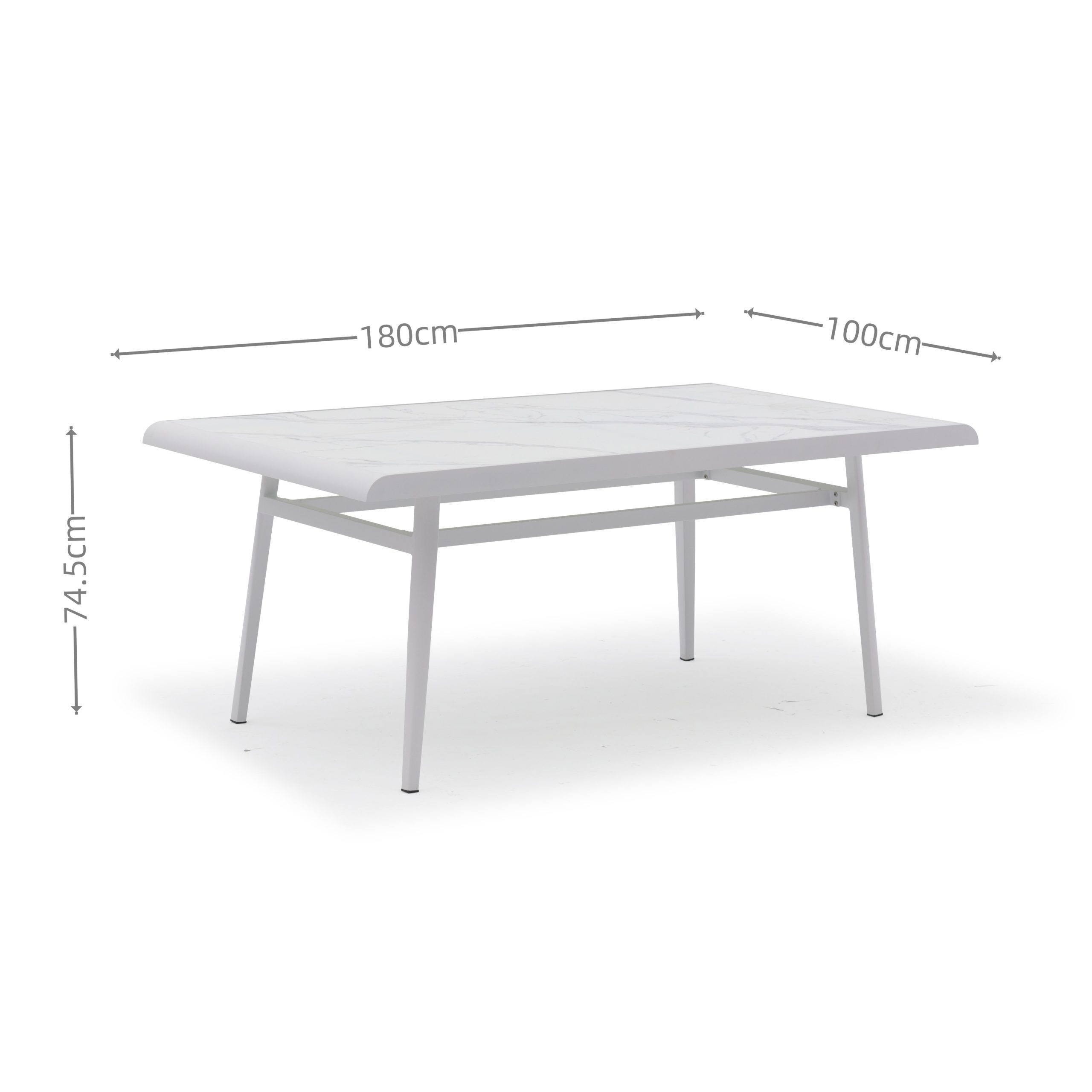 ALU TABLE WITH STONE GLASS TOP: | L180xW100x74.5cm |