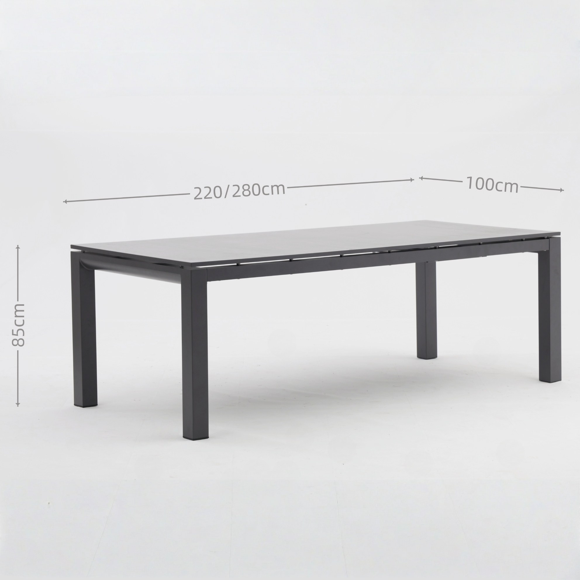 | TC125 ALU TABLE WITH SINTERED TOP: | L220/280xW100xH75cm |