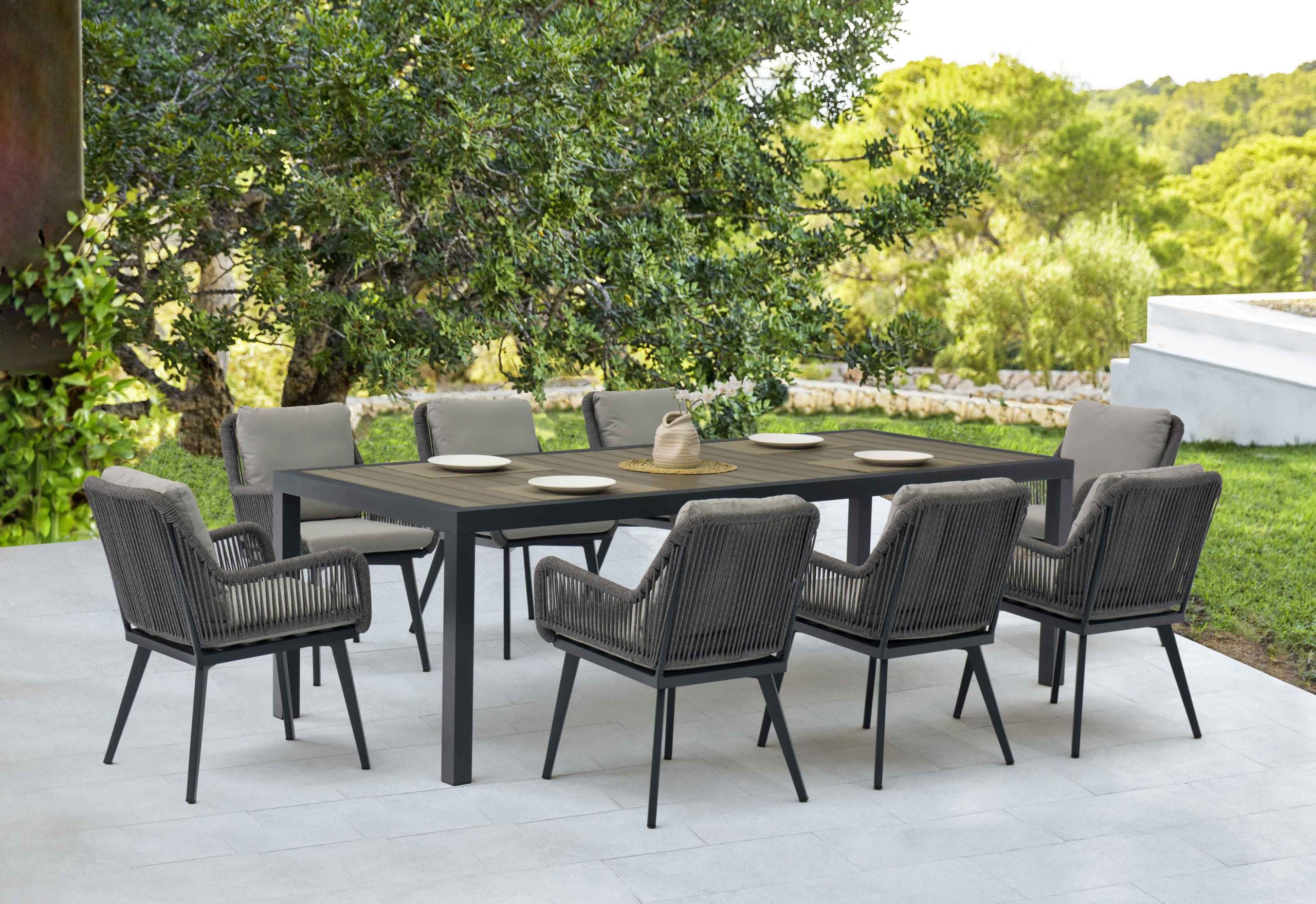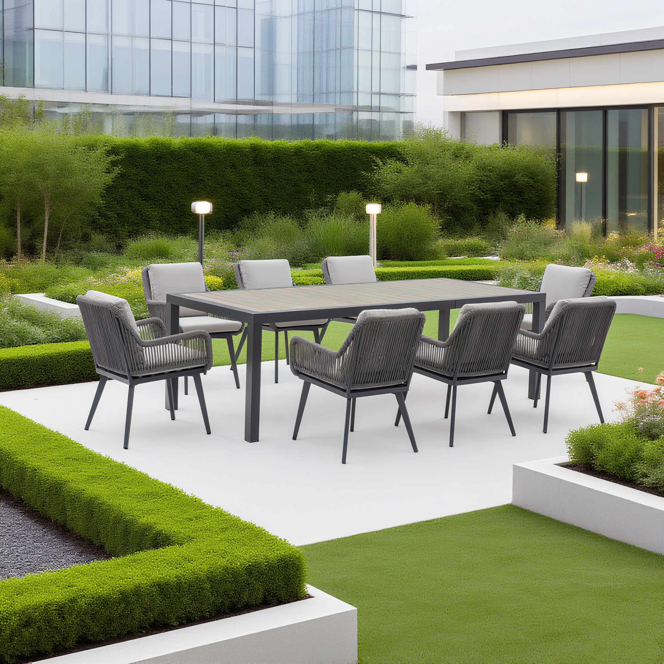Aluminium Polyester(Cushion,Rope) POLYWOOD(Table top)