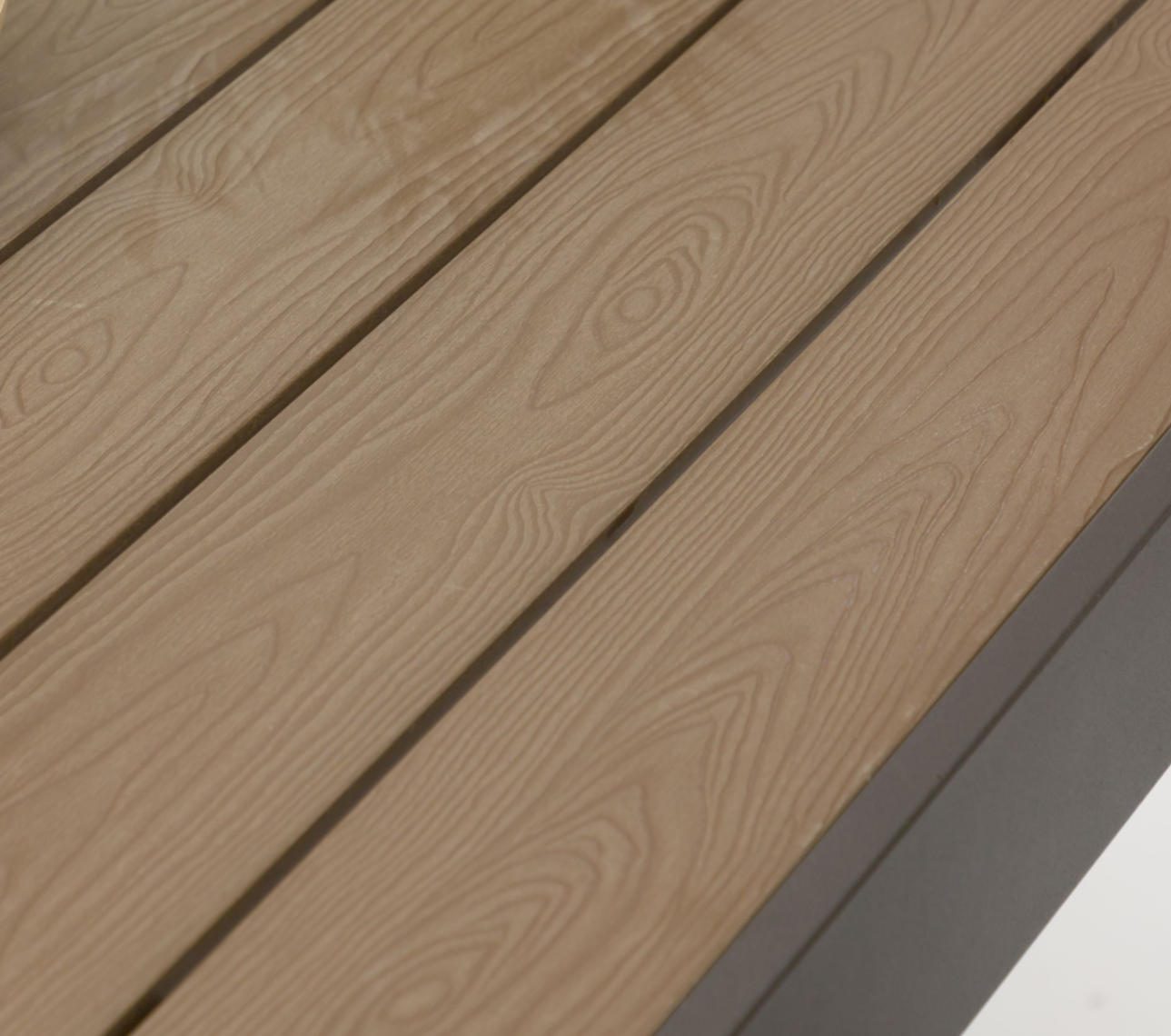 This high-quality PS wood-plastic composite is specially designed for outdoor scenarios. It features highly realistic wood grain textures and can seamlessly integrate with various outdoor environments such as gardens, patios, and terraces. Its surface has undergone special treatment, endowing it with stain-resistant, waterproof, and moisture-proof properties. This material skillfully combines the natural aesthetics of wood with the practical characteristics of modern composite materials, bringing long-lasting beauty to outdoor spaces.