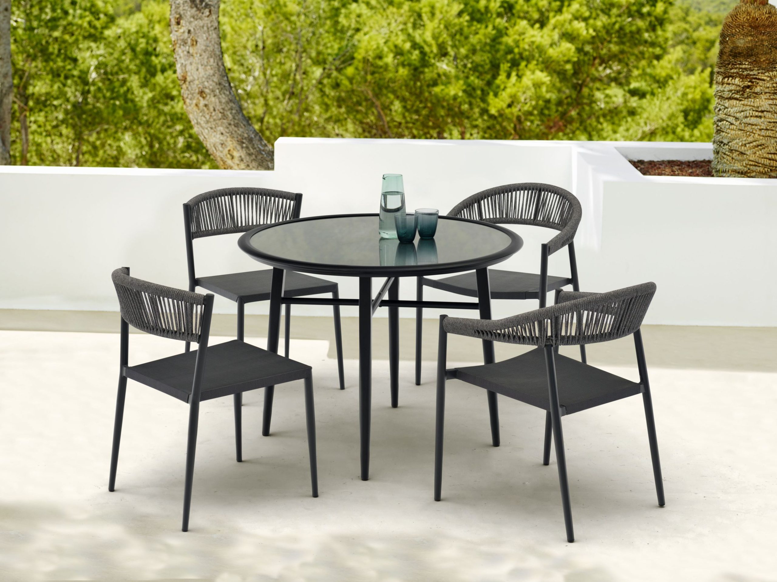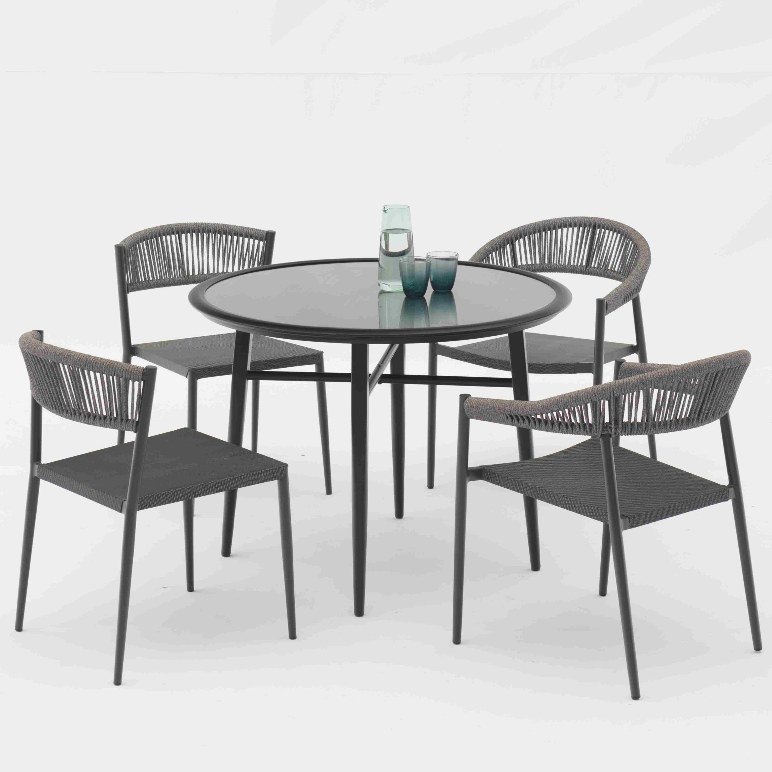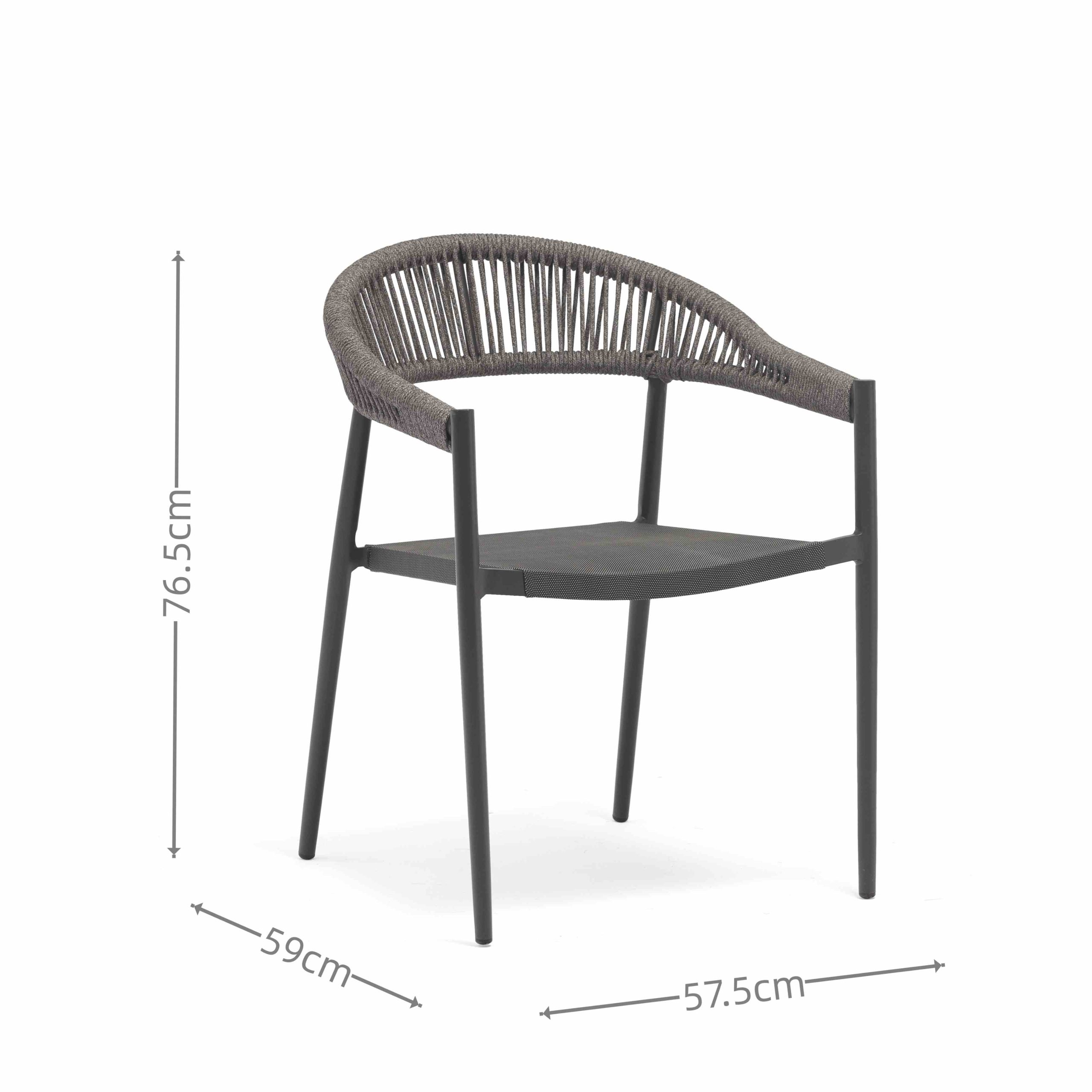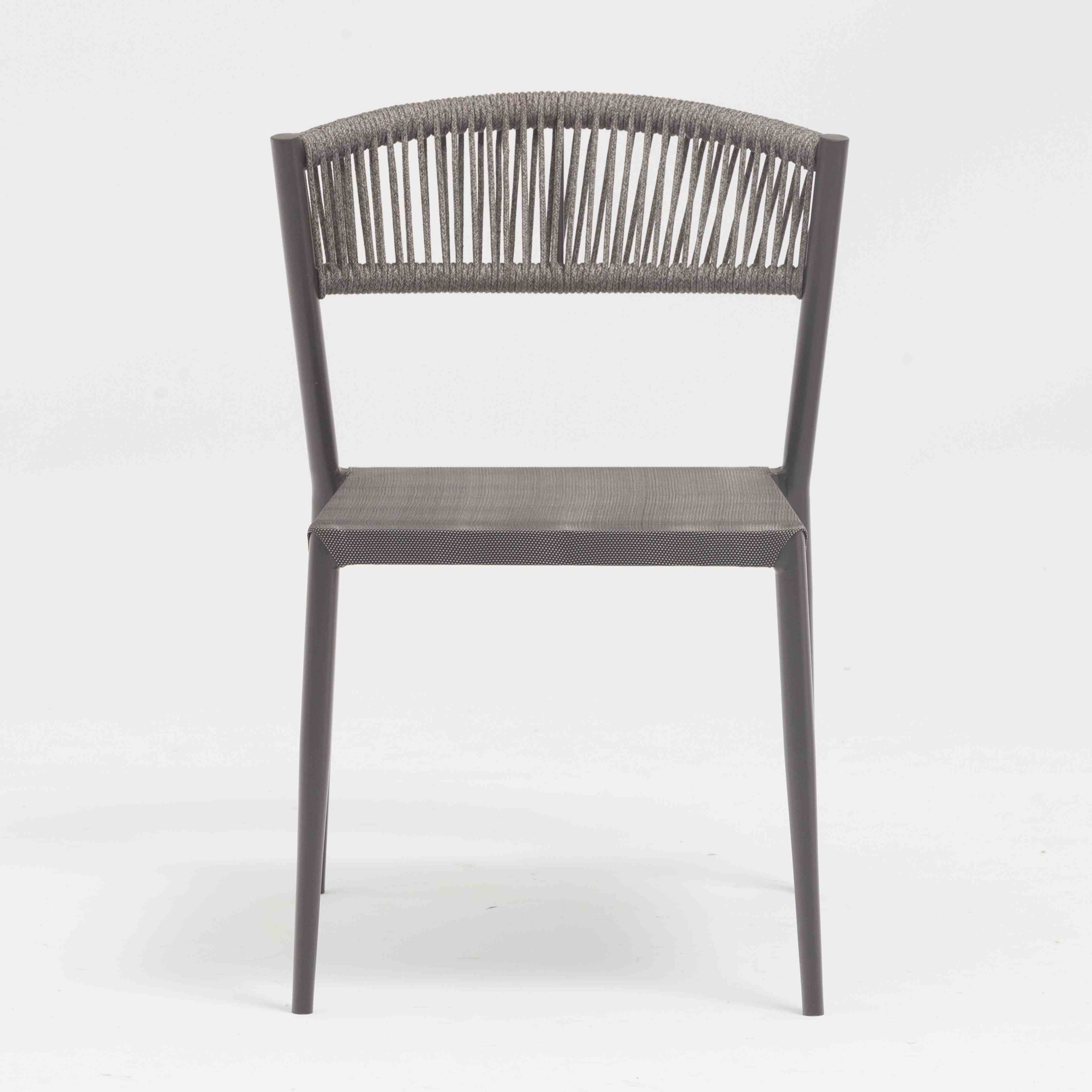 | YT295A ALU. CHAIR WITH ROPE BACK AND TEXTYLENE SEAT: | W57.5xD59xH76.5cm |