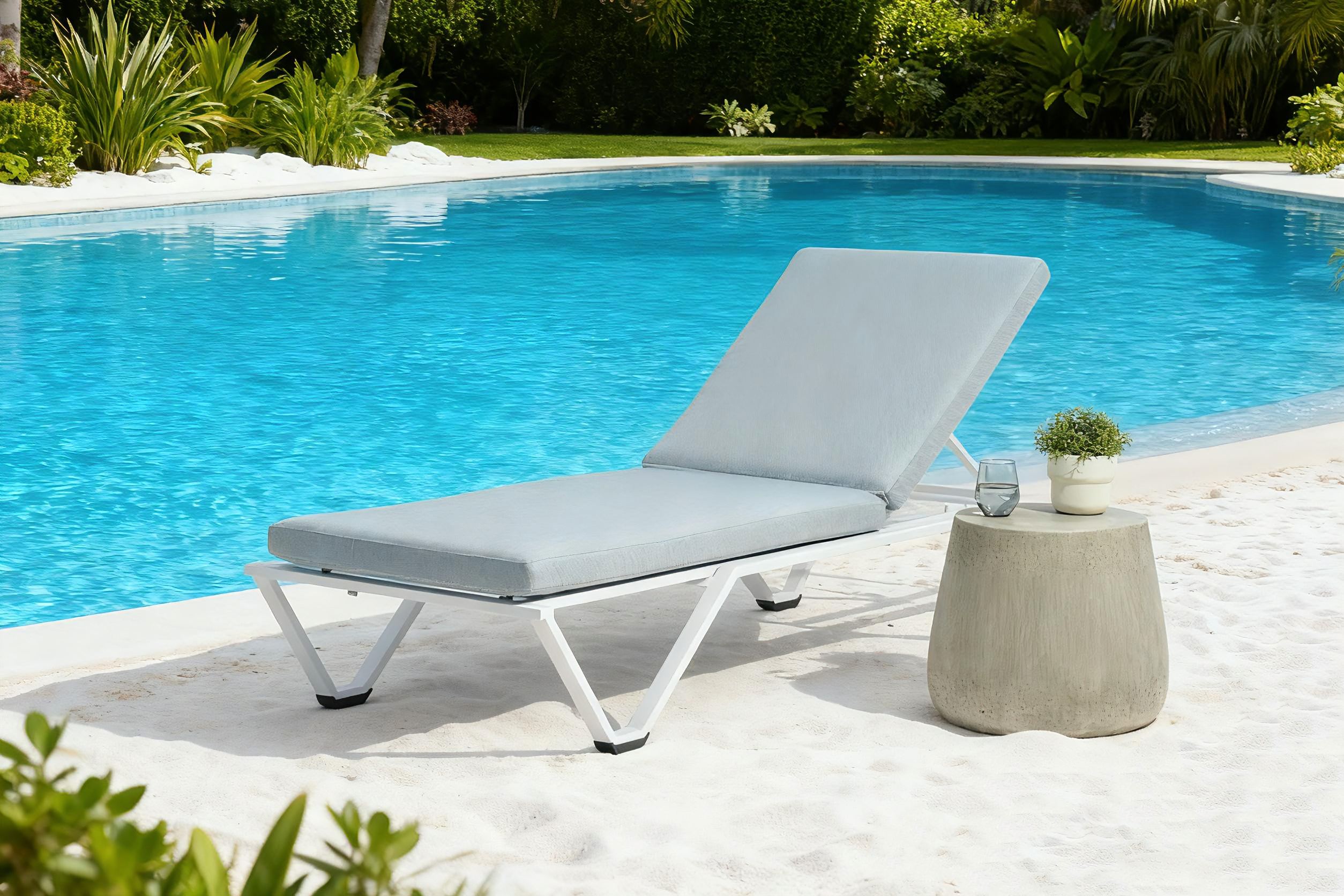 High-quality outdoor lounge beds are constructed with a full-aluminum frame and paired with water-repellent outdoor-specific cushions. Placed by outdoor swimming pools, they not only provide a comfortable and pleasant lounging experience but also feature long-lasting durability.