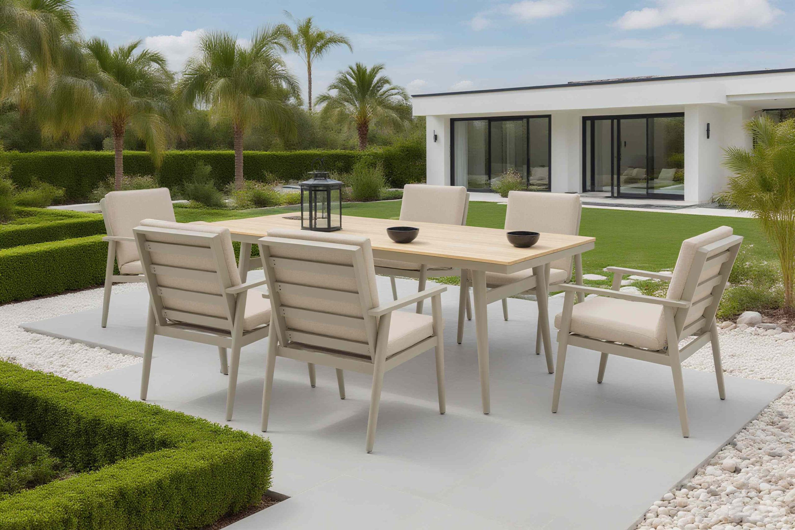 Outdoor dining set with aluminum frame – durable, perfect for garden gatherings.(S213 &S213T)