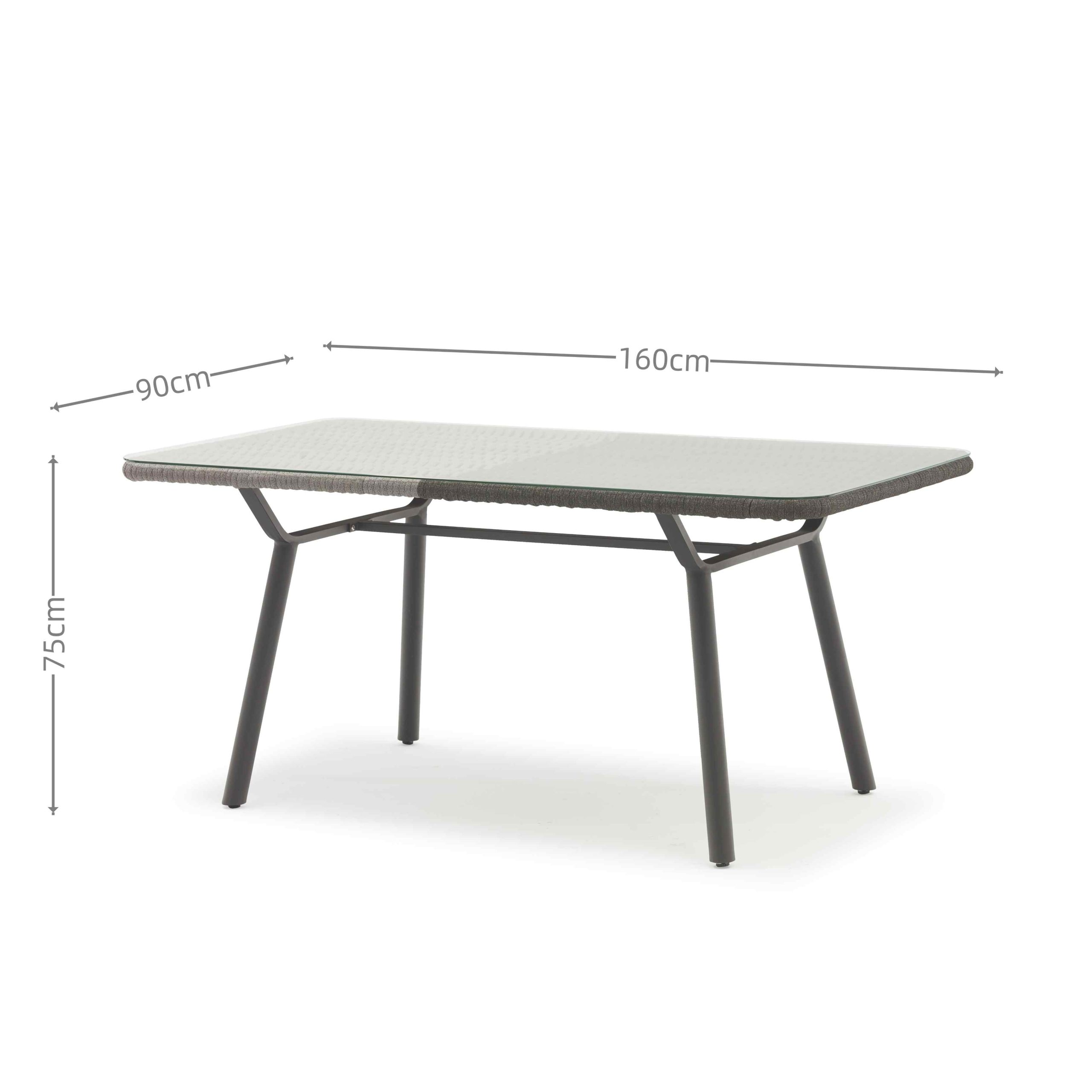 S255T ALU.TABLE WITH ROPE AND GLASS TOP:  L160xW90xH75cm