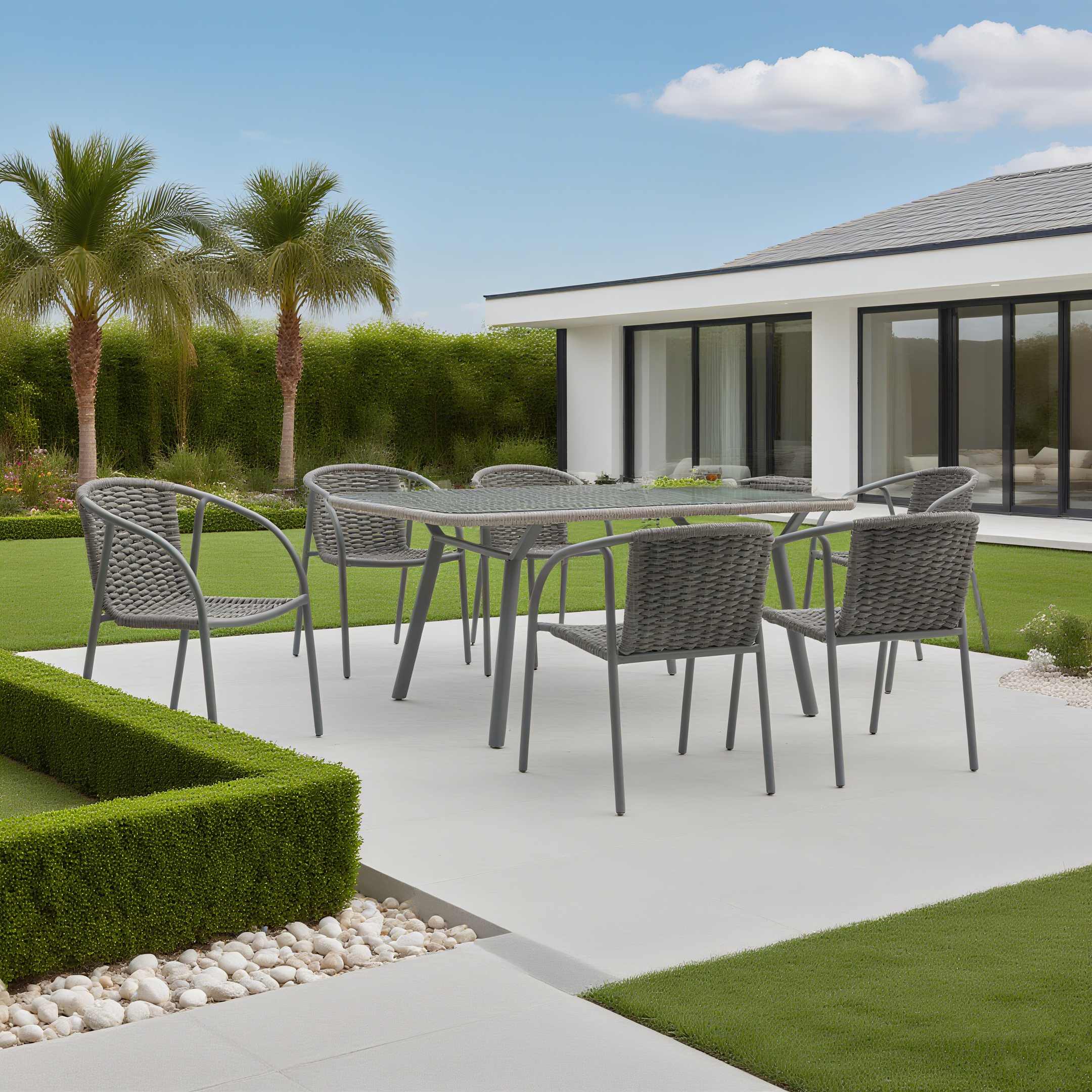 Aluminium alloy frame    Polyester(Rope)    Glass (Table top)