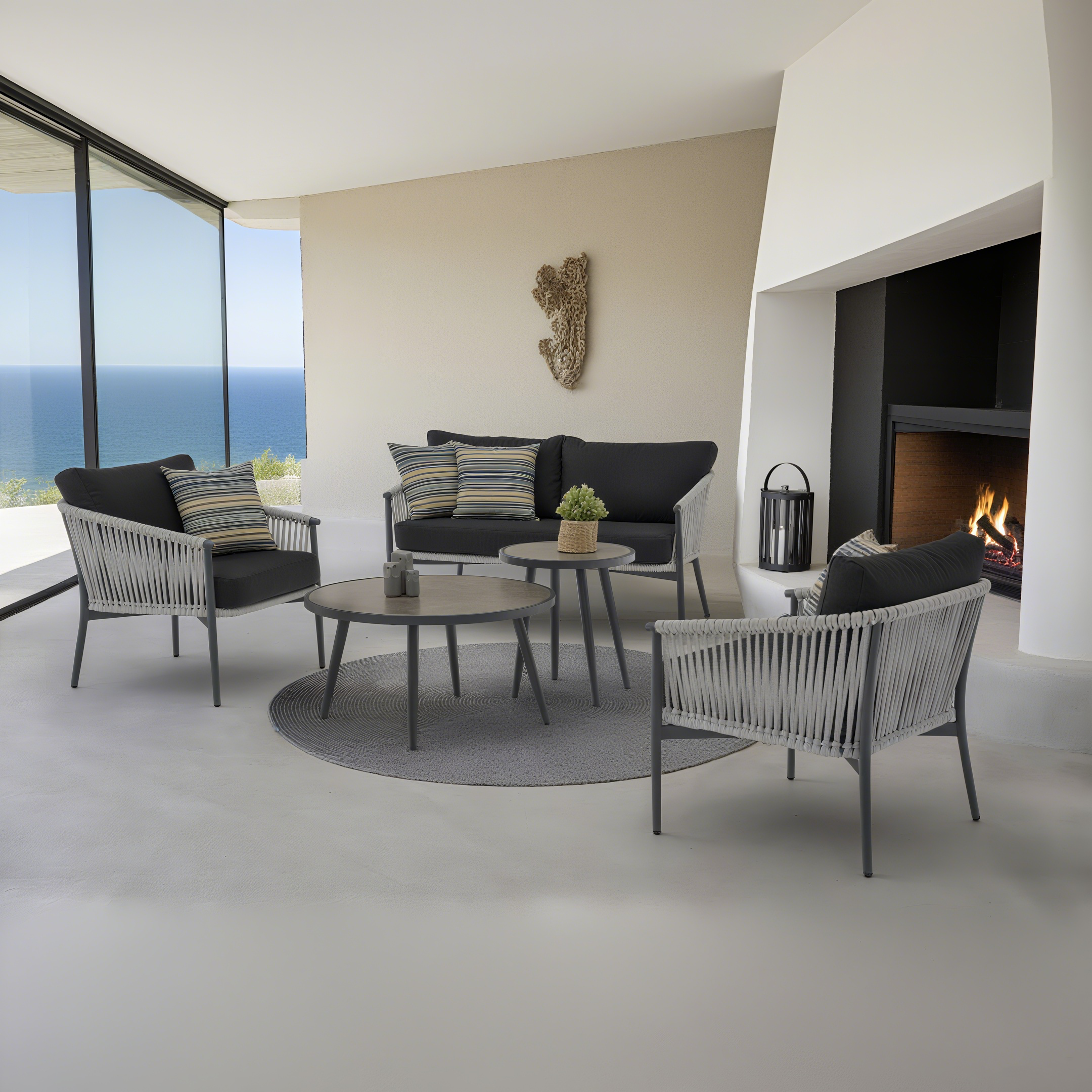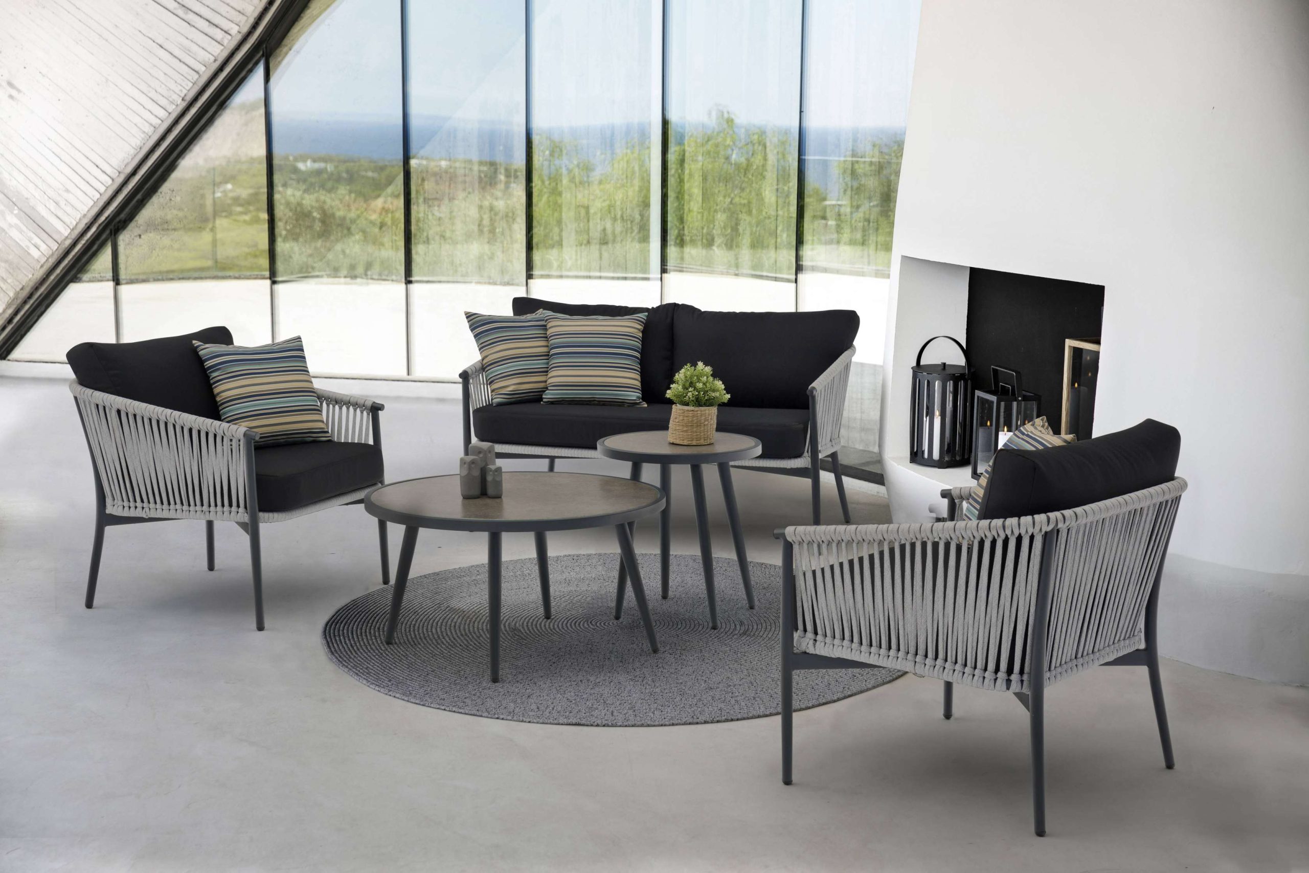 Aluminium alloy frame Stylish Outdoor Rope Weave High resilience sponge Simulated Outdoor Stone-patterned Glass