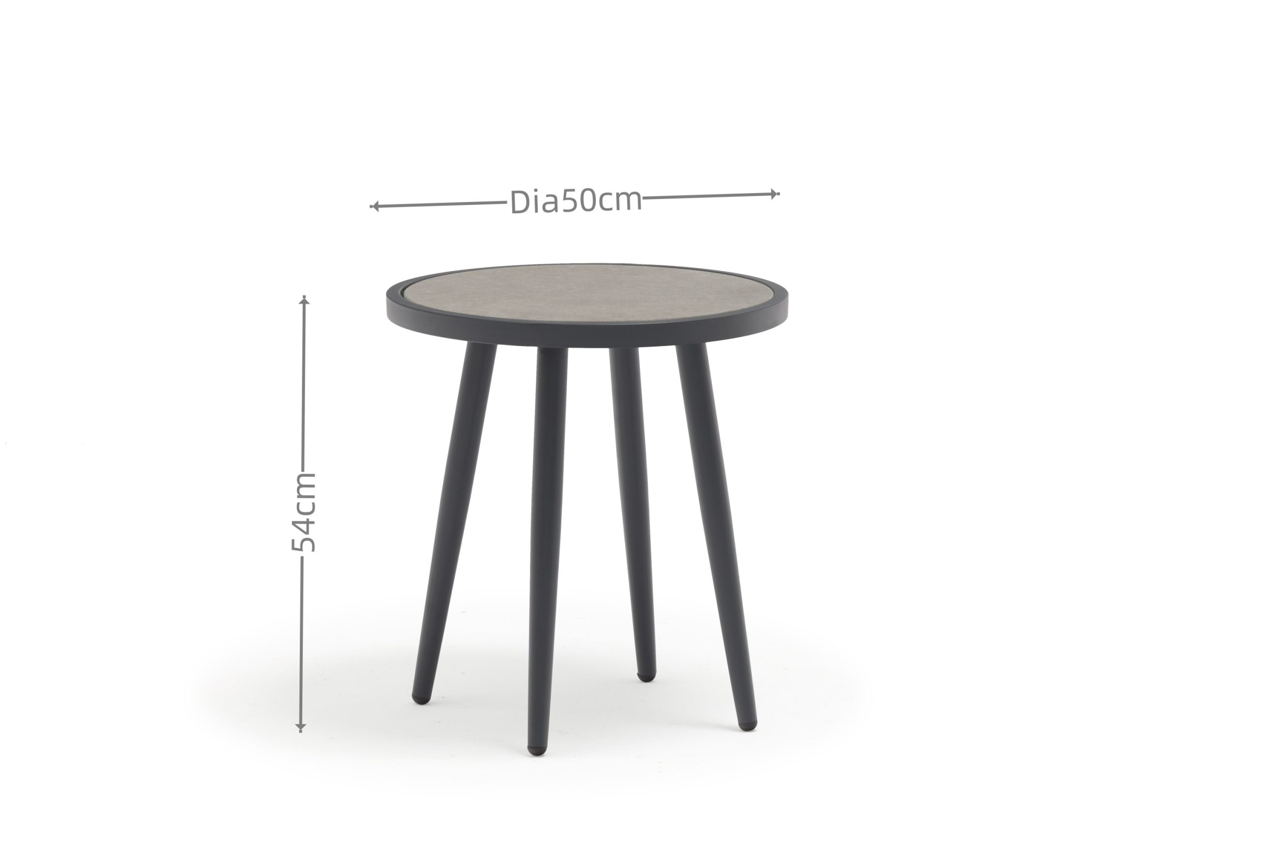 | S179T2 ALU.TABLE WITH STONE GLASS TOP: | Dia50xH54cm |