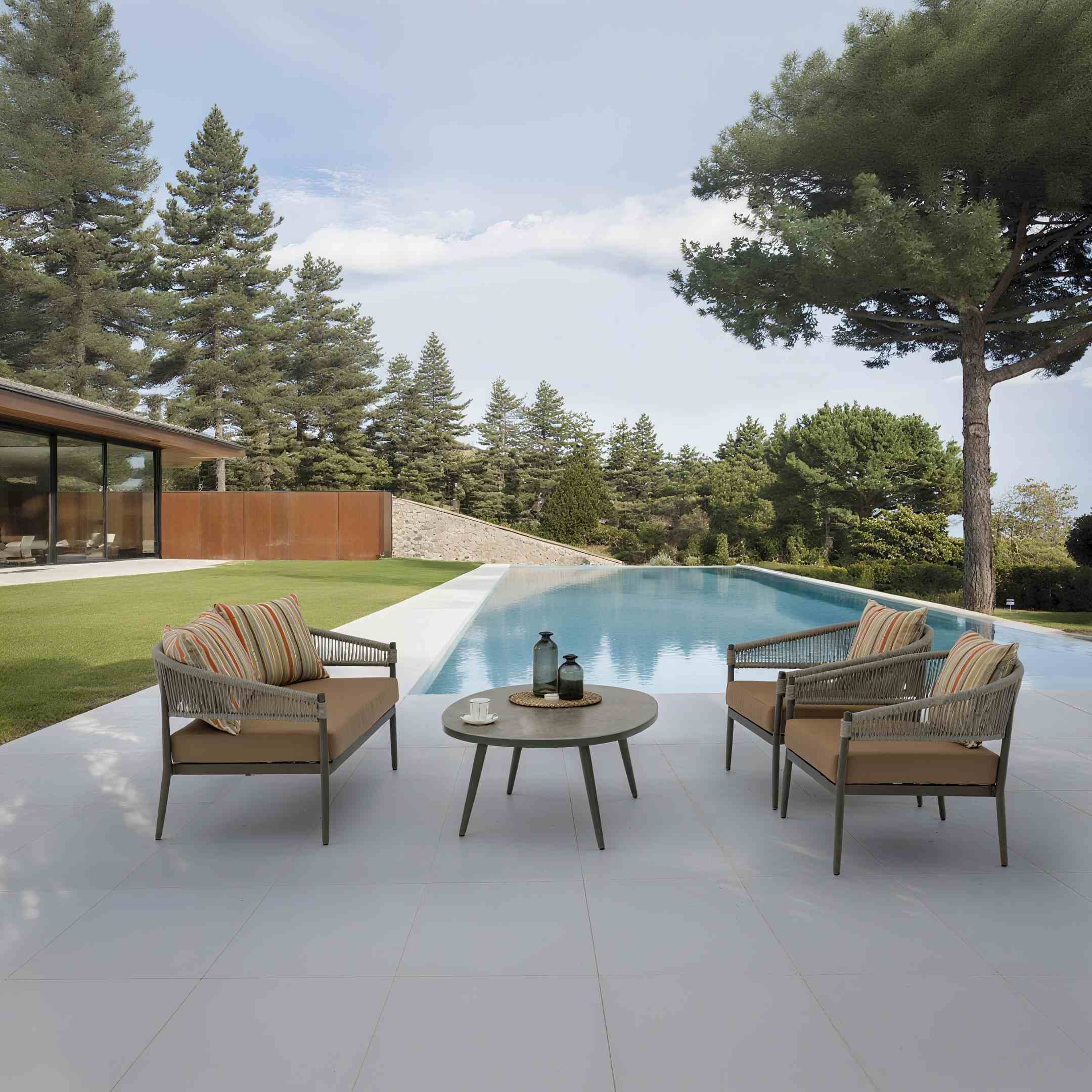 Aluminium alloy frame Stylish Outdoor Rope Weave High resilience sponge Simulated Outdoor Stone-patterned Glass