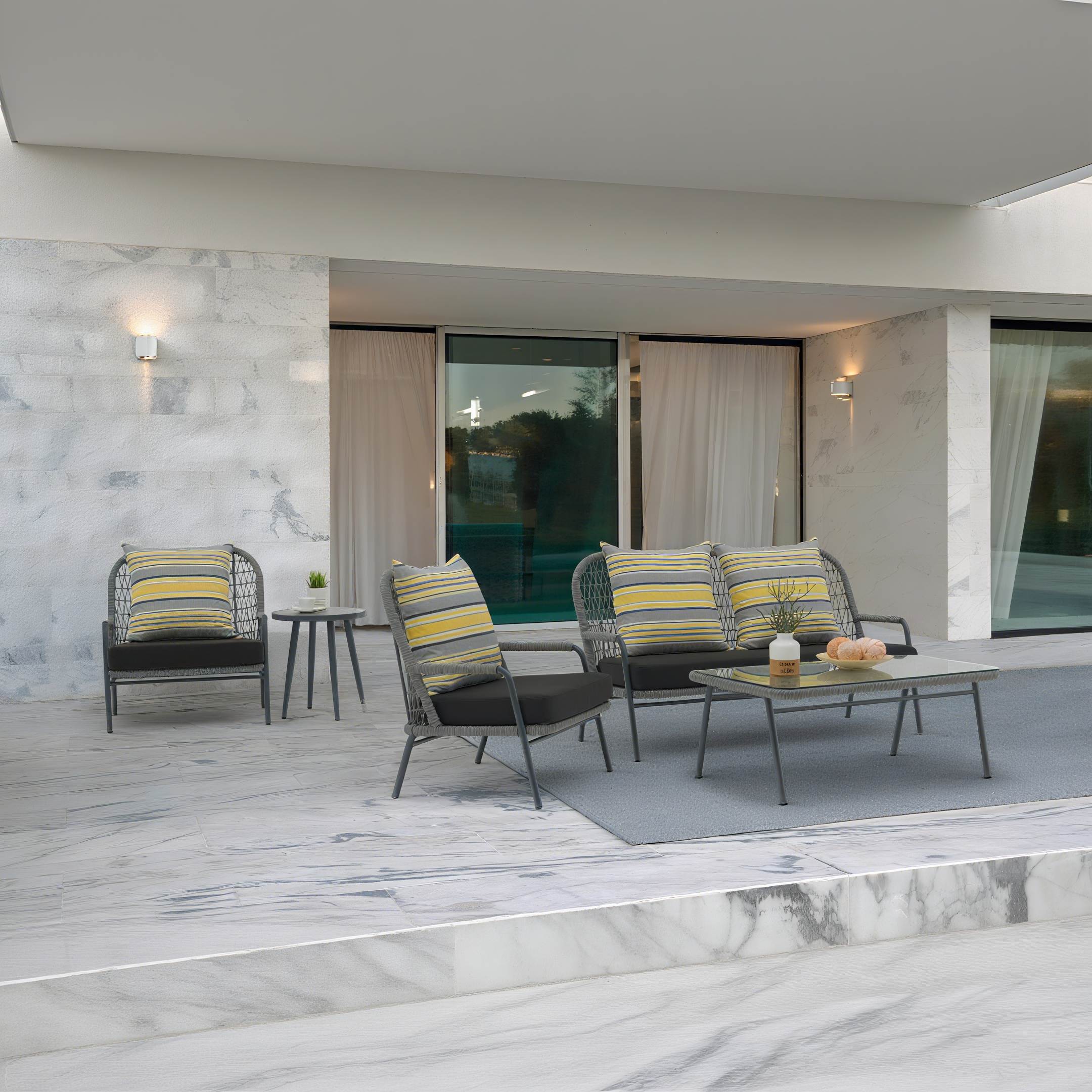 Aluminium alloy frame    Stylish Outdoor Rope Weave    High resilience sponge