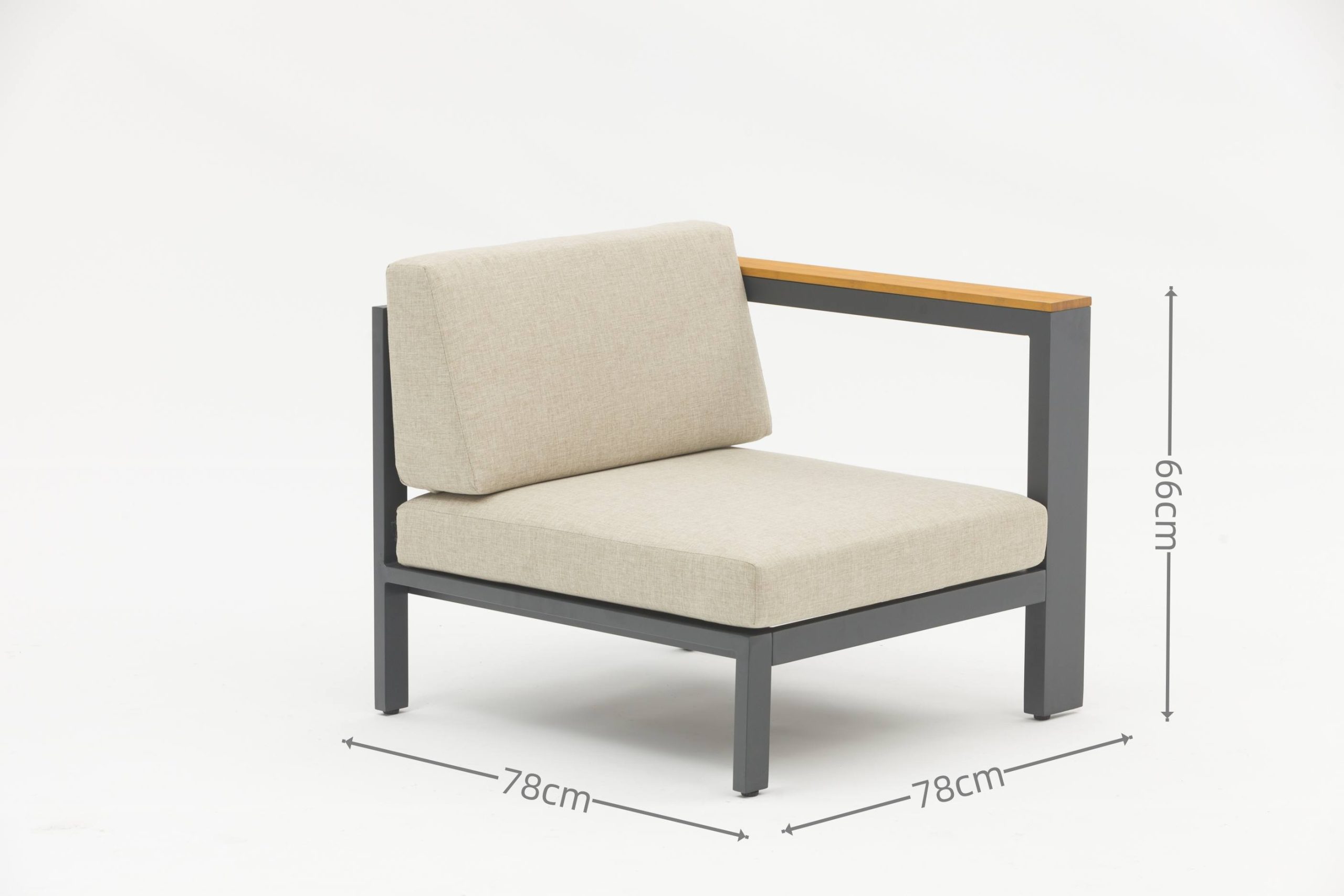 S221A ALU. SOFA WITH BAMBOO ARM(RIGHT): W78xD78xH66cm