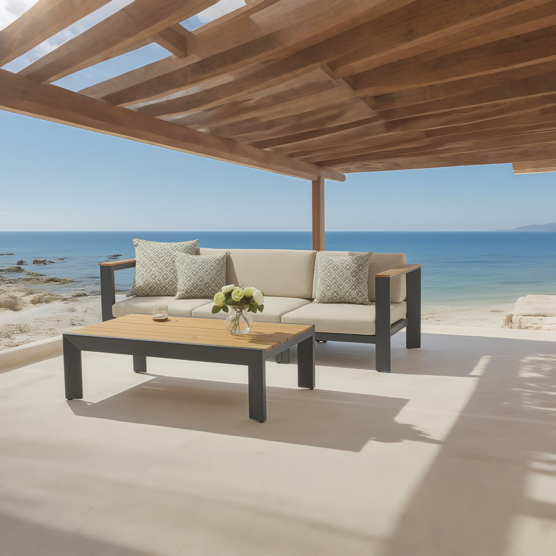 Premium All – Aluminum Outdoor Sofa Set, Bamboo Table(S221 SET)