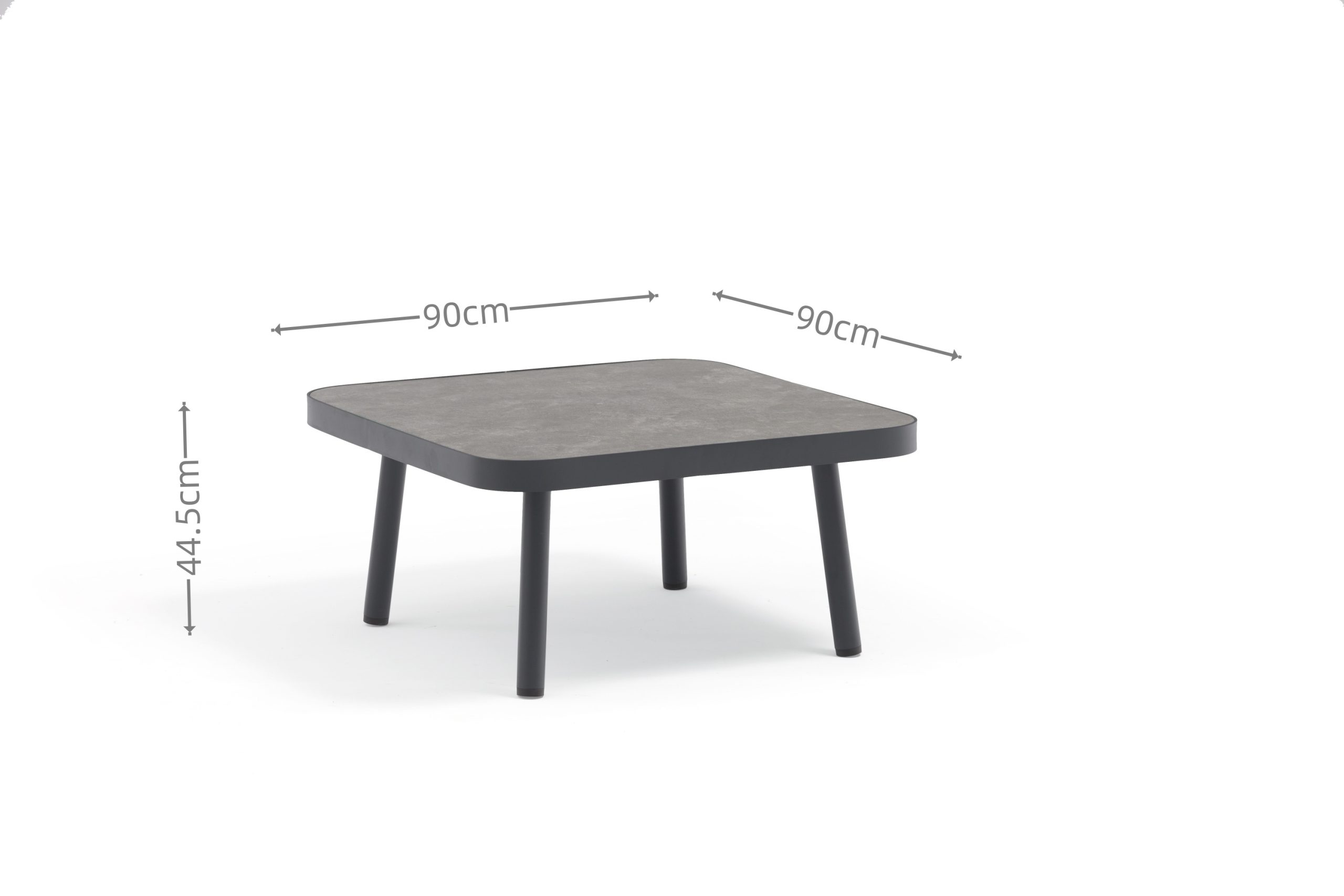 | S181T ALU. COFFEE TABLE WITH STONE GLASS: | W90xD90xH44.5cm |